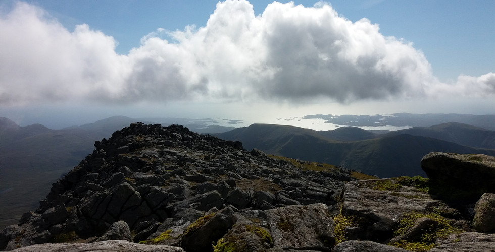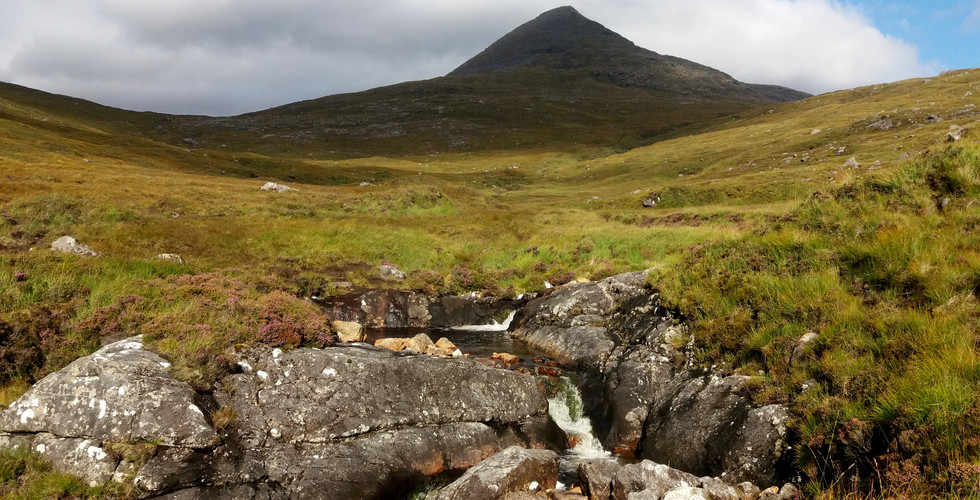 31. 8. pátek – Výšlap na Clisham 799 m; Dle předpovědi počasí má být dnes jasno. Snídáme a připravujeme se na výšlap na nejvyšší vrchol Hebrid, An Clisham (799 m). Nasedáme do auta a brzy už přijíždíme na parkoviště k patě hory. Pohorky, návleky, hůlky, batůžek se zásobou vody a energie a můžeme vyrazit vzhůru. Jdeme okolo potoku a po chvíli ztrácíme vyšlapanou bažinatou cestičku vzhůru. Nespěcháme. První z nepravých vrcholů máme na dohled. Fouká. Ve vrcholové pasáži se intenzita větru nepříjemně zvyšuje. Místo přímé trasy vzhůru volím okliku po závětrné straně hory. Na vrcholu nás čekají silné poryvy větru, kterým odoláváme jen díky kamennému kruhovému úkrytu. Rozhlížíme se po okolí a já ukazuji na vrcholky, které máme v plánu vylézt.