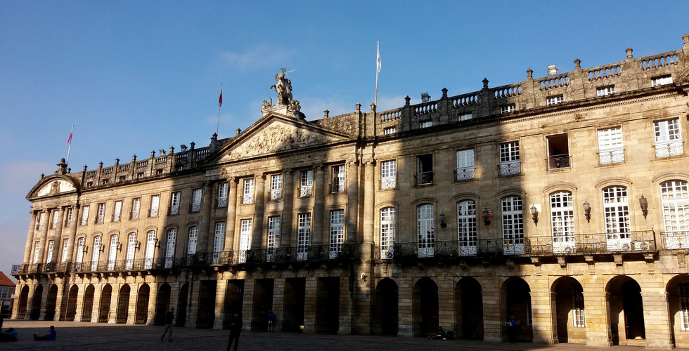 Z Monte do Gozo to je před katedrálu necelých pět kilometrů cesty. Vstáváme a v devět ráno jsme už před katedrálou. Je jasno. Na obrovském náměstí Plaza del Obradoiro není téměř ani noha. Fotíme se s nově opravenou čelní fasádou katedrály, a pak už jdeme do poutnické kanceláře, kde si chceme vyzvednout diplomy. Nikde nikdo. Žádná fronta. Vůbec nechápu, jak je to možné, ale nestěžuji si.