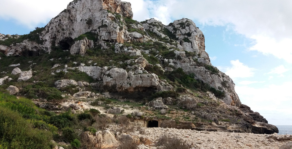 Začíná pršet. Poprvé vytahuji jedinou záchranu před deštěm, igelitovou pláštěnku na jedno použití a začínám chápat dovětek "na jedno použití". Jdu po silnici a aniž bych stopovala, zastavuje mi pán s paní. S díky využívám nabídnuté pomoci. Nasedám do auta a nechávám se odvézt na parkoviště nedaleko skalních hrobů Cales Coves.