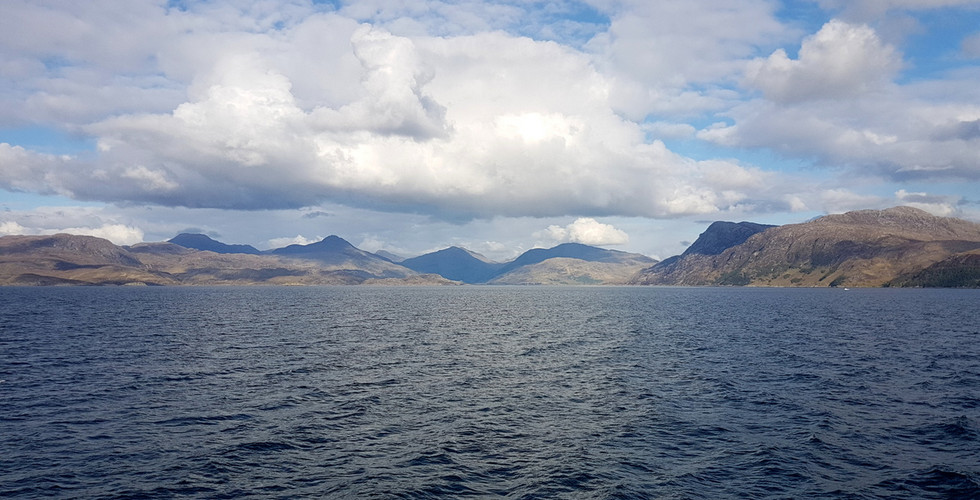 V 18:10 nám odjíždí trajekt z Mallaigu, přístavu, kde končí silnice na západ a v 18:45 už připlouváme do Armadale. Ostrov Isle of Skye nás vítá podvečerním sluncem a mraky. „Jak typické,“ říkám si. V Broadford tankuji naftu. První opravdová pauza nás čeká až u hotelu Sligachan, kde se nachází nádherná vyhlídka na pohoří Black a Red Cullins. Zdejší výhled na zaoblené a ostré vrcholky dokresluje obrovská duha.