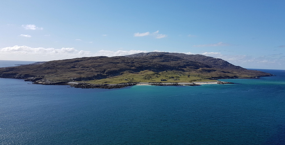 Odpoledne přejíždíme do osady Hushnish. Cestou zastavujeme u místního zámku, sídla vrchnosti a nechybí ani fotografická zastávka u načechraných rohatých kraviček z vysočiny. Adél s Danou zůstávají na zdejší pláži, která si svou krásou může zadat s tou mnohem známější u osady Luskentyre. My ostatní se ještě jdeme projít okolo pobřeží k opuštěné bílé pláži Tráigh Mheilein. Svítí sluníčko a je naprosto neskutečně! U jezera Loch na Cleabhaig začínáme stoupat vzhůru do sedla pod vrchol Husival Beag. Doplňujeme „živou vodu“ z místního potůčku a vracíme se zpět za holkami na pláž k osadě Hushnish.