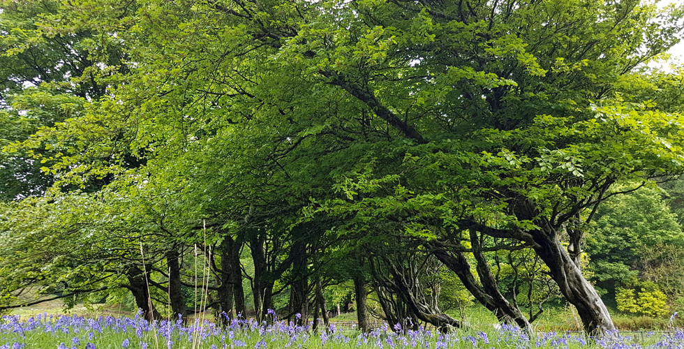 Nedaleko Obanu je hrad Dunollie Castle, a protože je květen, jeho okolí je přesyceno barvami jara. Rododendrony přidávají žlutou, růžovou, lososovou, karmínovou a rudou barvu a v podrostu se modrají „blue bells“ – divoké hyacinty, které zde tvoří koberce modré! Přestává pršet.