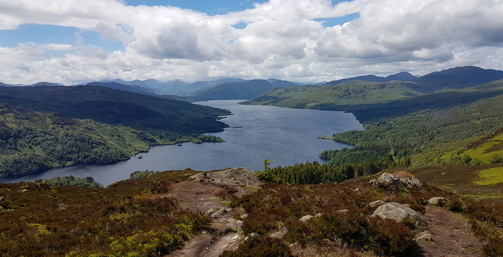 Callander je jedno z typicky skotských kamenných městeček, o trochu méně populární než známější Pitlochry. Nezastavujeme. Naším cílem je parkoviště pod horou Ben A´an. Svítí sluníčko. Je krásně. Balíme malé batůžky a vyrážíme vzhůru. Za mostkem přes potok se ostré stoupání mění v rovinatou cestičku a před námi je poprvé vidět náš vrchol. Po rovině následuje další ostré stoupání, a pak už jsme oceněni prvními výhledy na Loch Katrine.