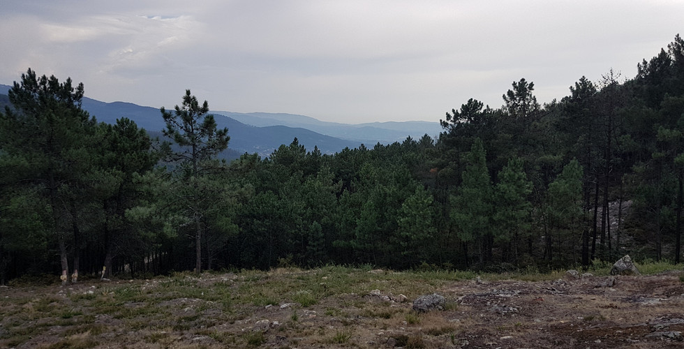 Civilizaci necháváme za zády ve chvíli, kdy přejdeme kamenný most přes řeku Lima. Opět procházíme skrz zemědělskou krajinu a po několika dalších kilometrech začínáme stoupat vzhůru. Štěrková lesní cesta nás vede až na nejvyšší bod naší pouti (Alto da Portela Grande 405 m), kde se trošku záhadně všichni potkáváme.