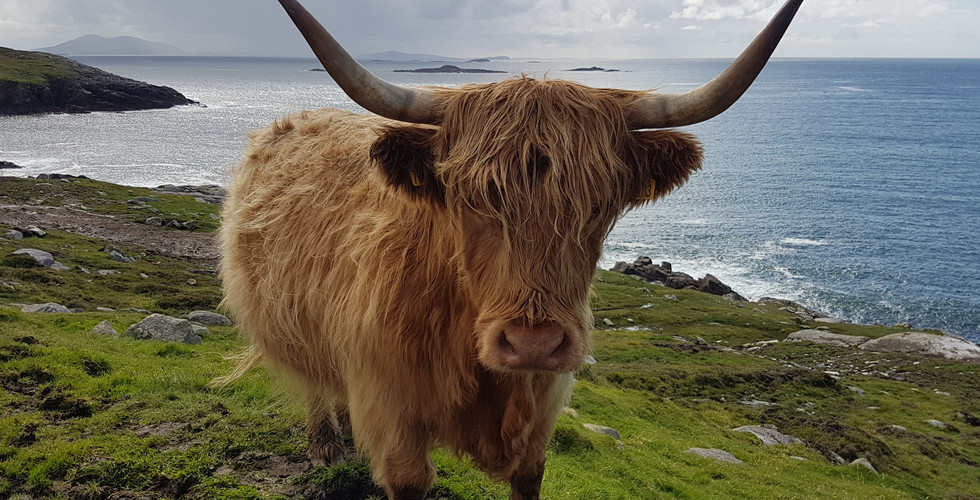 Odbočujeme a z hlavní silnice jedeme na západ. Projíždíme okolo komína, poslední vzpomínky na kdysi fungující velrybářskou továrnu a cesta se začíná kroutit- doprava, doleva, nahoru a dolů. Na konci úzké asfaltky nás čeká nádherná bílá pláž, tyrkysové moře, několik domečků osady Hushinish a huňaté kravičky z vysočiny.