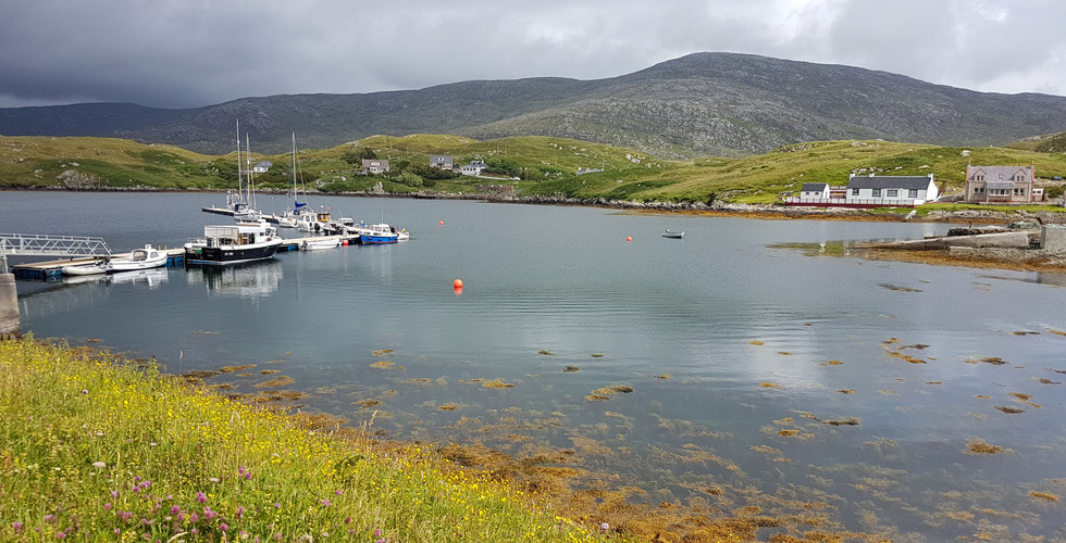 Dělíme se na dvě skupiny. Holky se jdou najíst do místní (jediné otevřené) restaurace a já s ostatními piknikuji. Už zase je úplně jasno a svítí slunce. Procházíme trhem a nakukujeme i do místní destilérky, kde doplňujeme zásoby nejlepšího ginu, co znám. Součástí největšího městečka na ostrově, Tarbetu, je i malý krámeček se suvenýry lokální výroby a naproti stojící obchod s Harriským tweedem. Nakupujeme, co se dá, a pak opět odjíždíme z civilizace pryč.