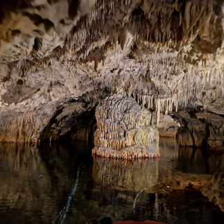 4. 3. úterý: Dnes máme v plánu jízdu na východní pobřeží. Ještě předtím nás ale čeká prozkoumat úplný jih Peloponésu. V 8:15 nasedáme do auta a přejíždíme do jeskyně Diros. Jeskyně Diros jsou jedny z nejkrásnějších a nejnavštěvovanějších jeskyní na Peloponésu. Nachází se úplně na jihu v oblasti Mani. Na horním parkovišti kupujeme vstupenky na velký okruh, a protože je tu liduprázdno, přejíždíme na spodní parkoviště, kde jsme blíž vstupu.